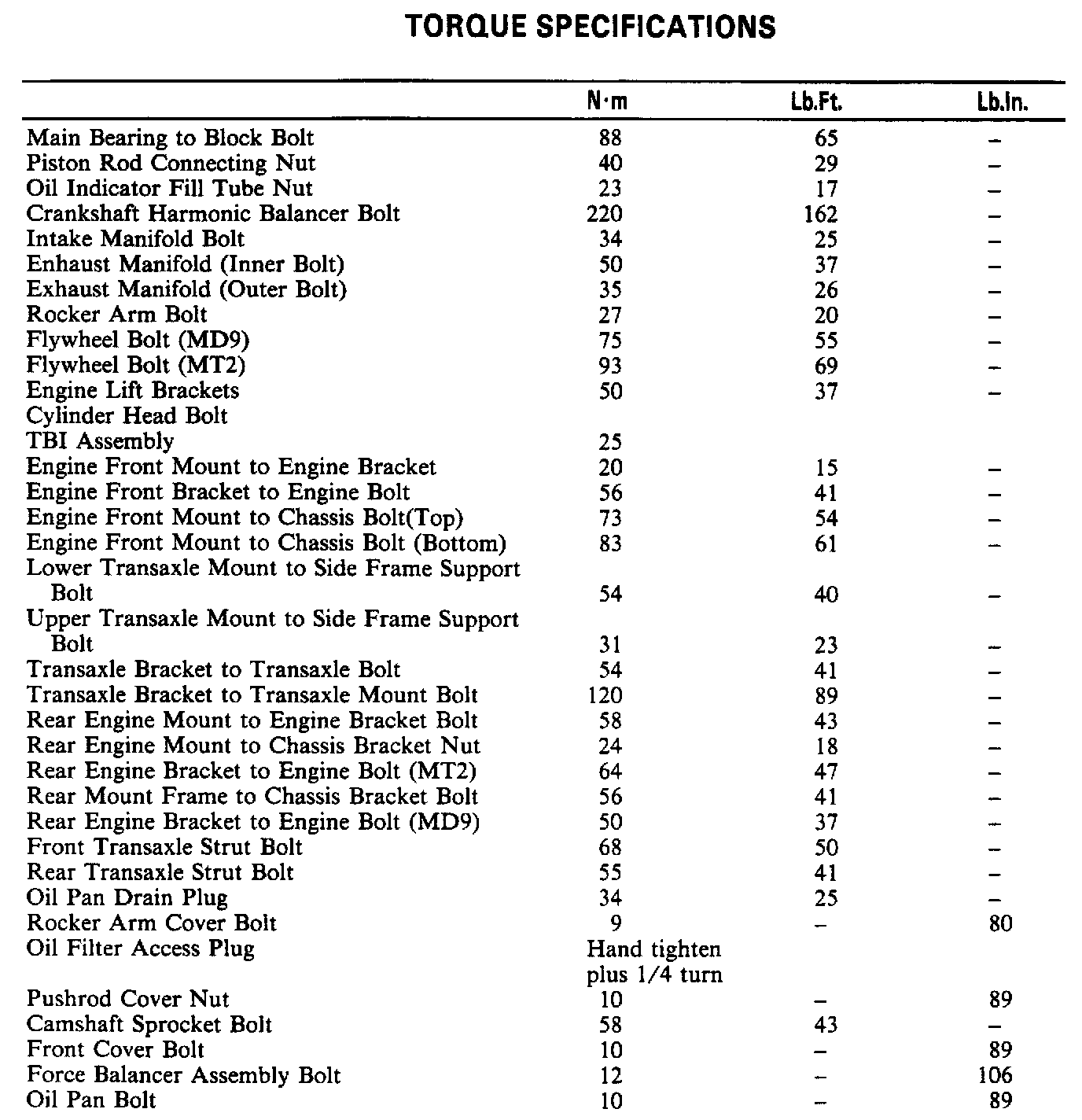 Torque Specifications: