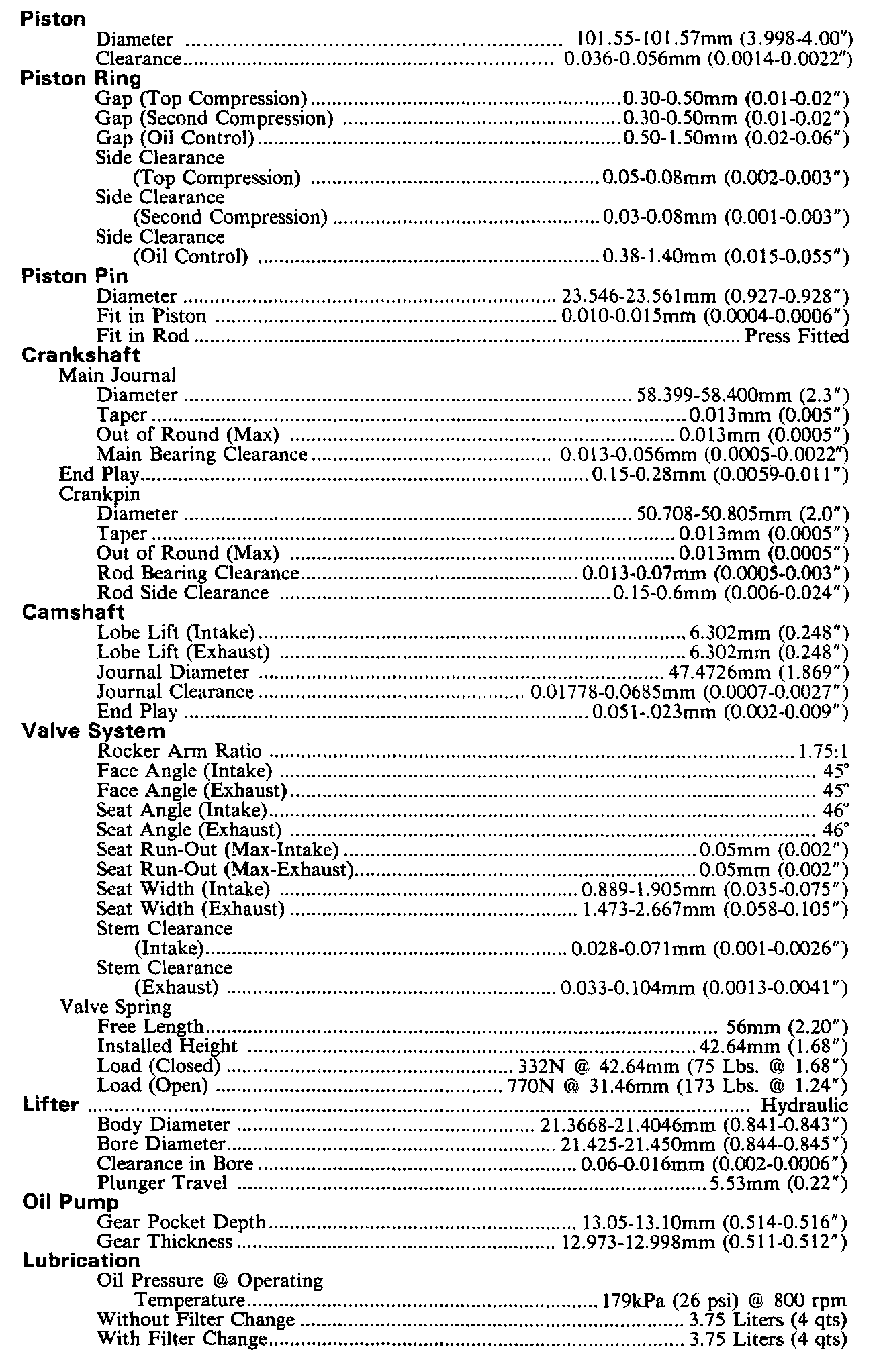 Continued Engine Specifications: