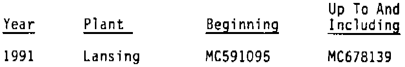 Involved are certain 1991 Pontiac Grand Am model vehicles equipped with power windows (RPO A31) built within the following VIN breakpoints:
