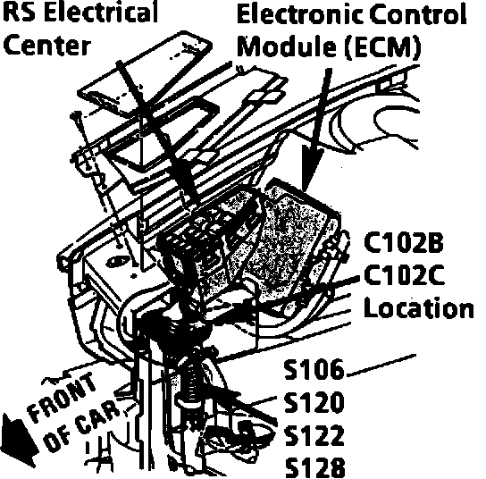 RH Front Of Engine Compartment:
