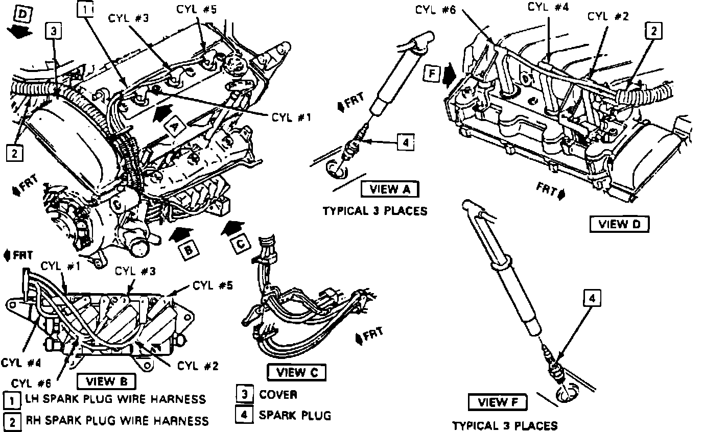 ^ Refer to COMPONENT LOCATIONS/SPARK PLUG WIRE ROUTINGS for proper location of spark plug wires.