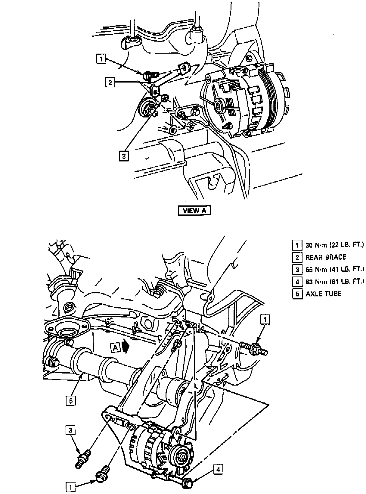 1. Generator and loosely install all mounting bolts. Tighten Generator lower mounting bolt to 83 Nm (61 ft lb).