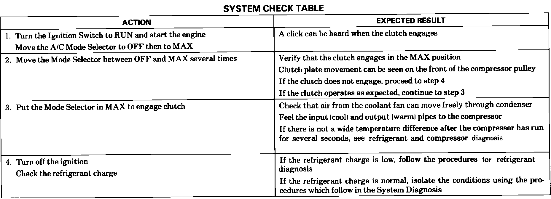 Complete the A/C System Check as a guide to normal operation of the