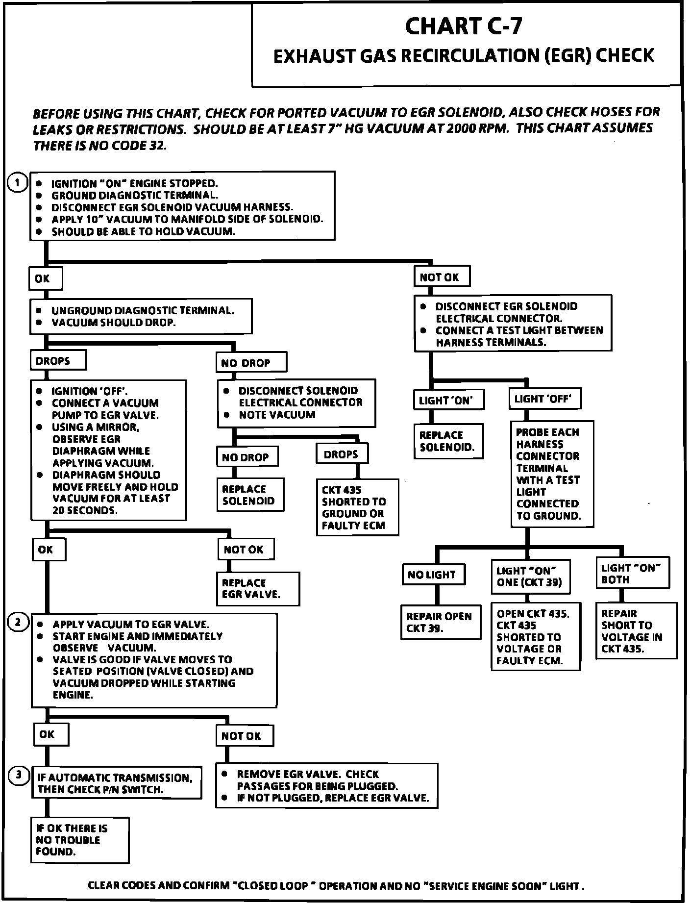 3. The EGR will be inoperative if the Park/Neutral switch is mis-adjusted, or faulty. Use a "Scan" tool to check the Park/neutral switch. Chart C-1 Park/Neutral Switch Diagnosis