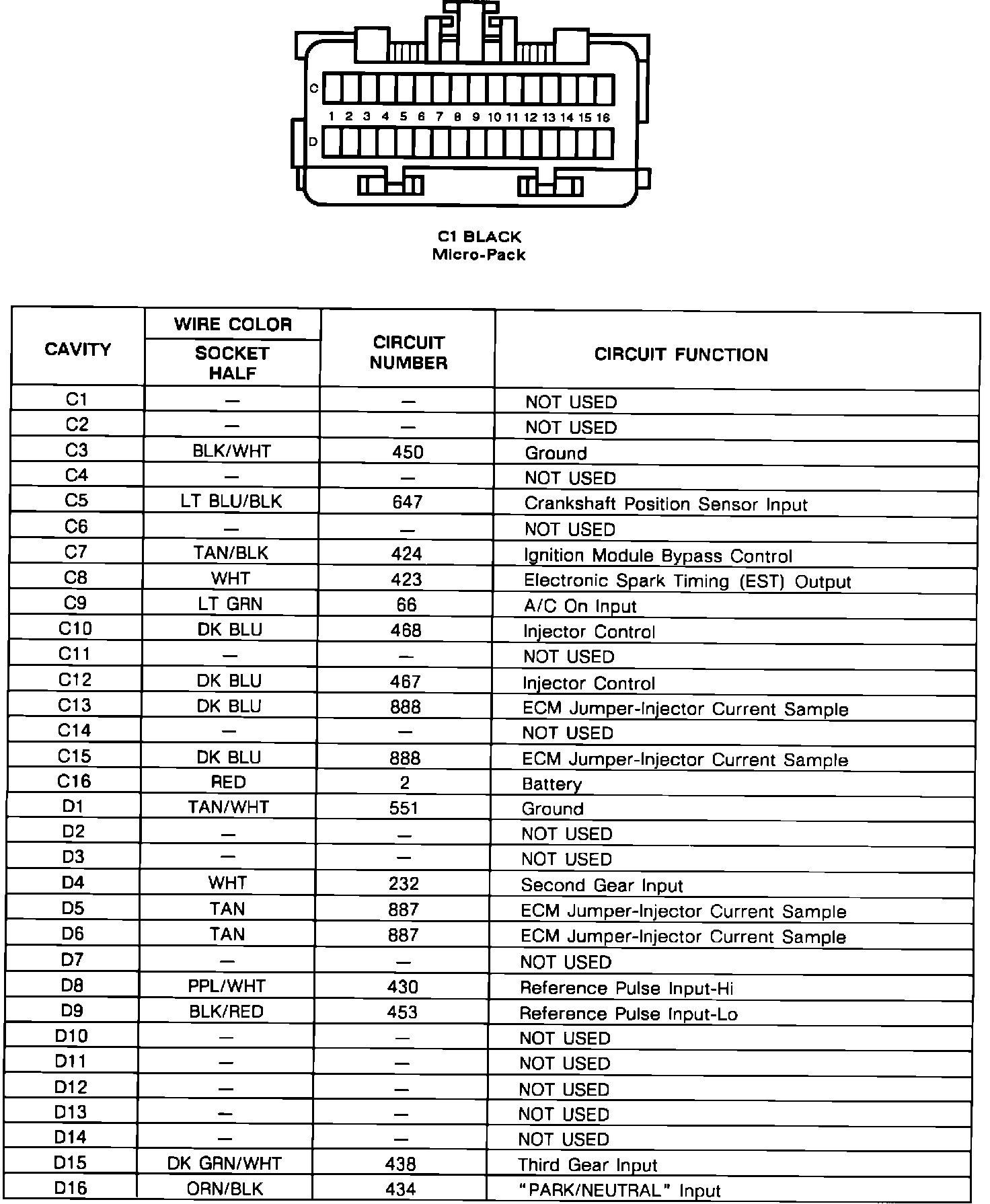 ECM C1 Connector Face: