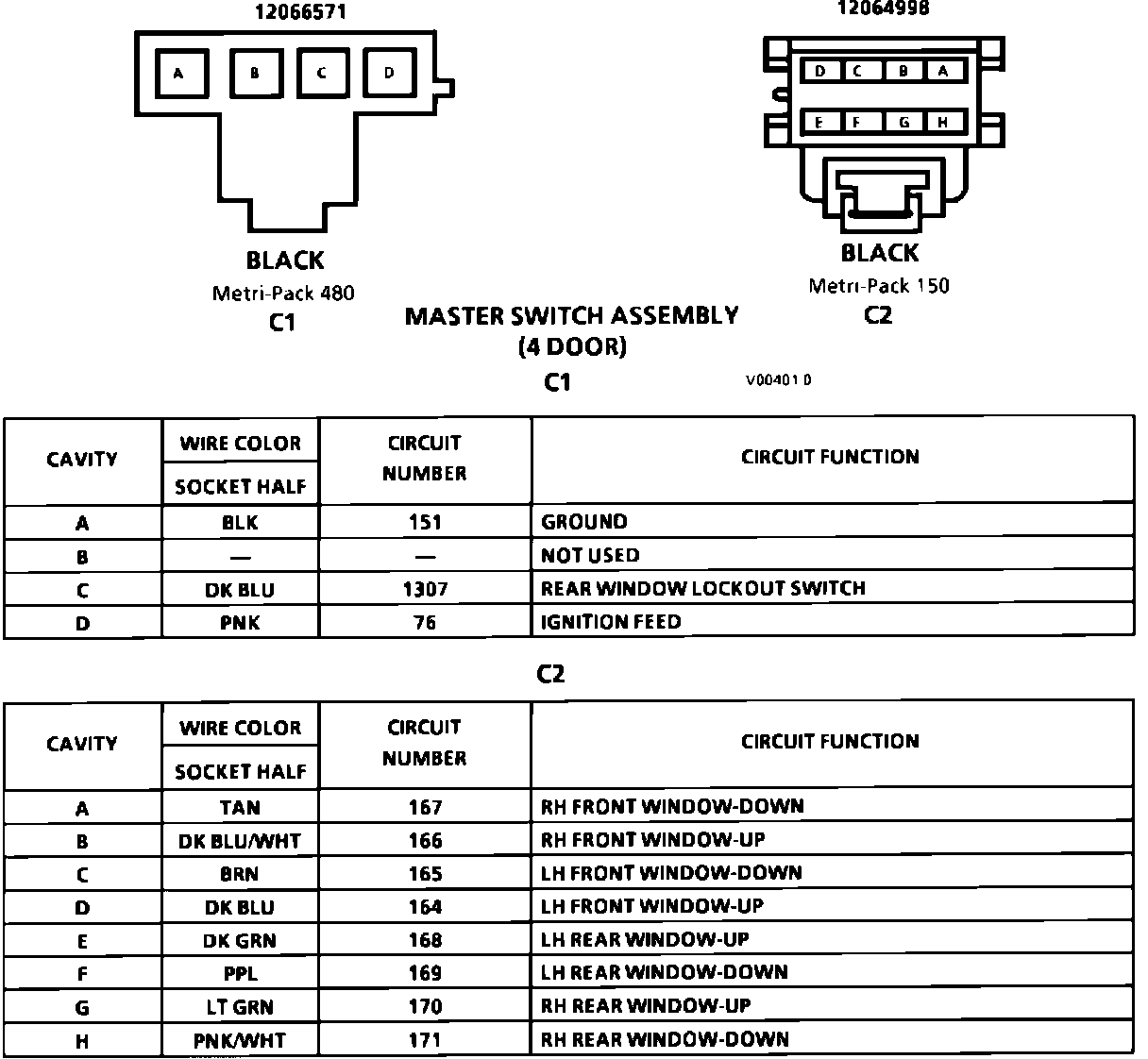 Master Switch Assembly (4 Door) Connector Face: