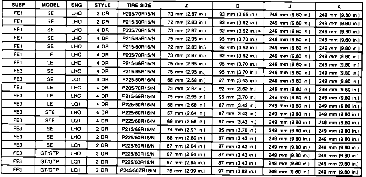 Fig. 16 Ride Height Specification Chart. 1992 Grand Prix: