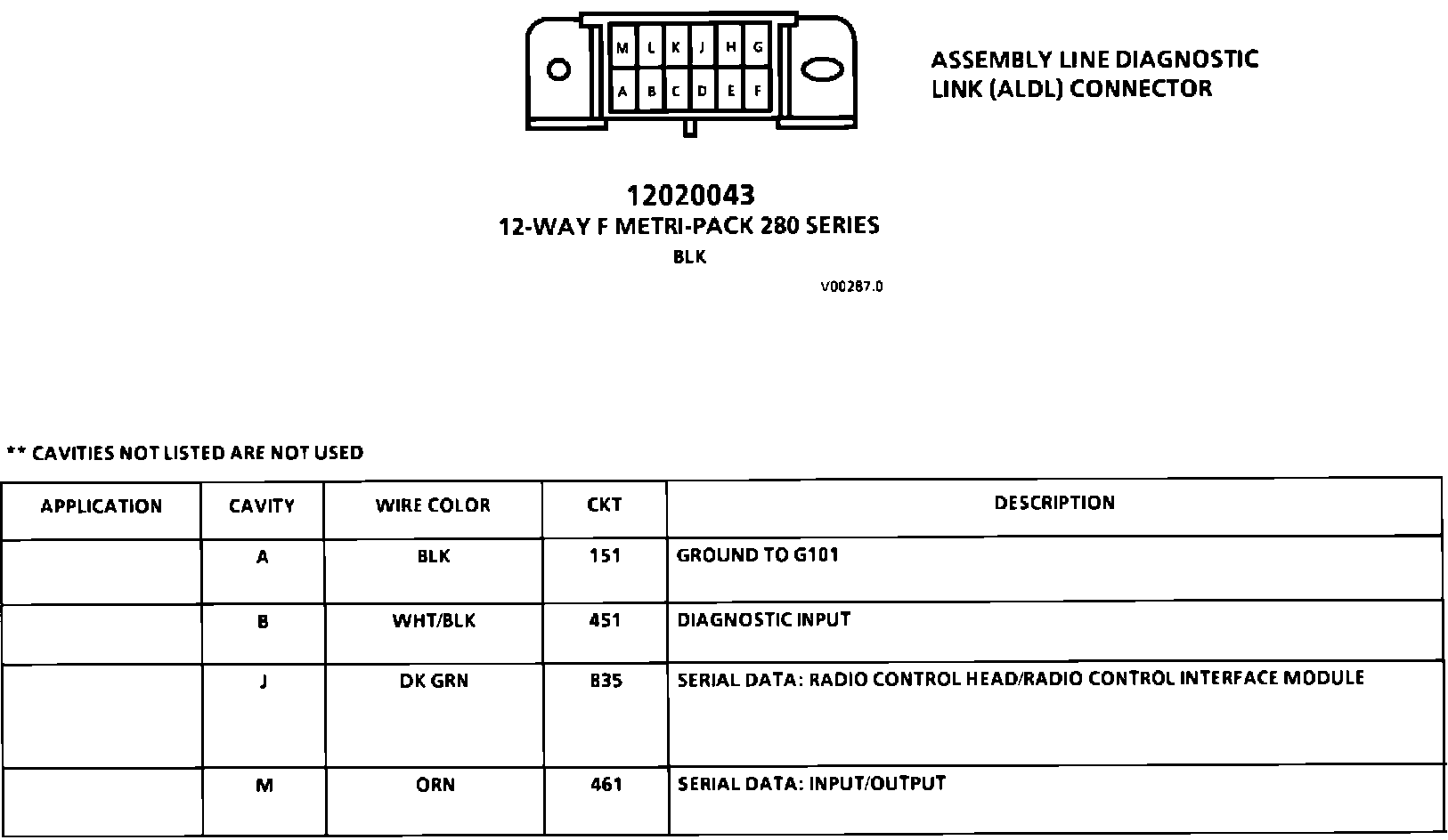 Assembly Line Diagnostic Link (ALDL) Connector Face: