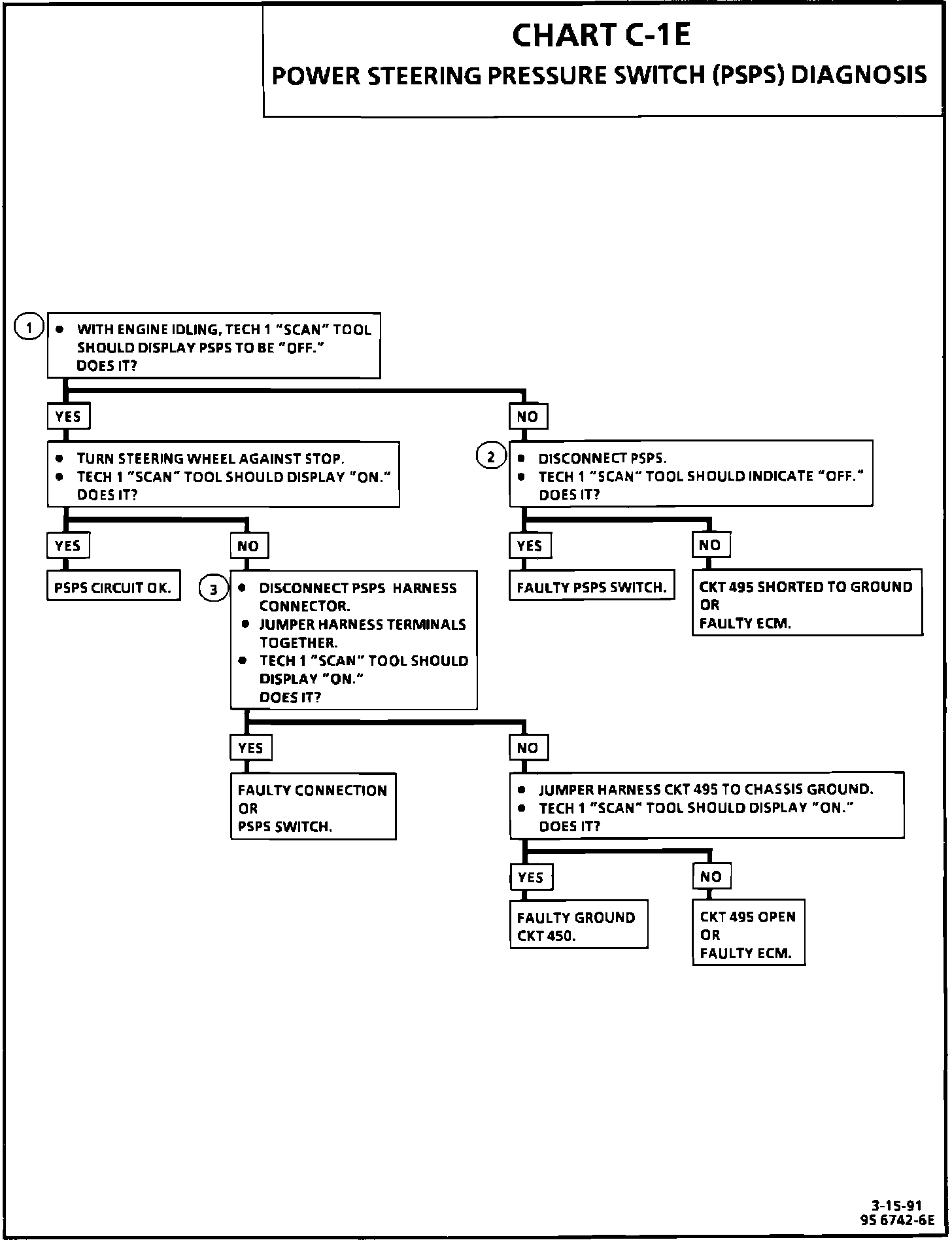 Chart C-1E, Power Steering Pressure Switch Diagnosis: