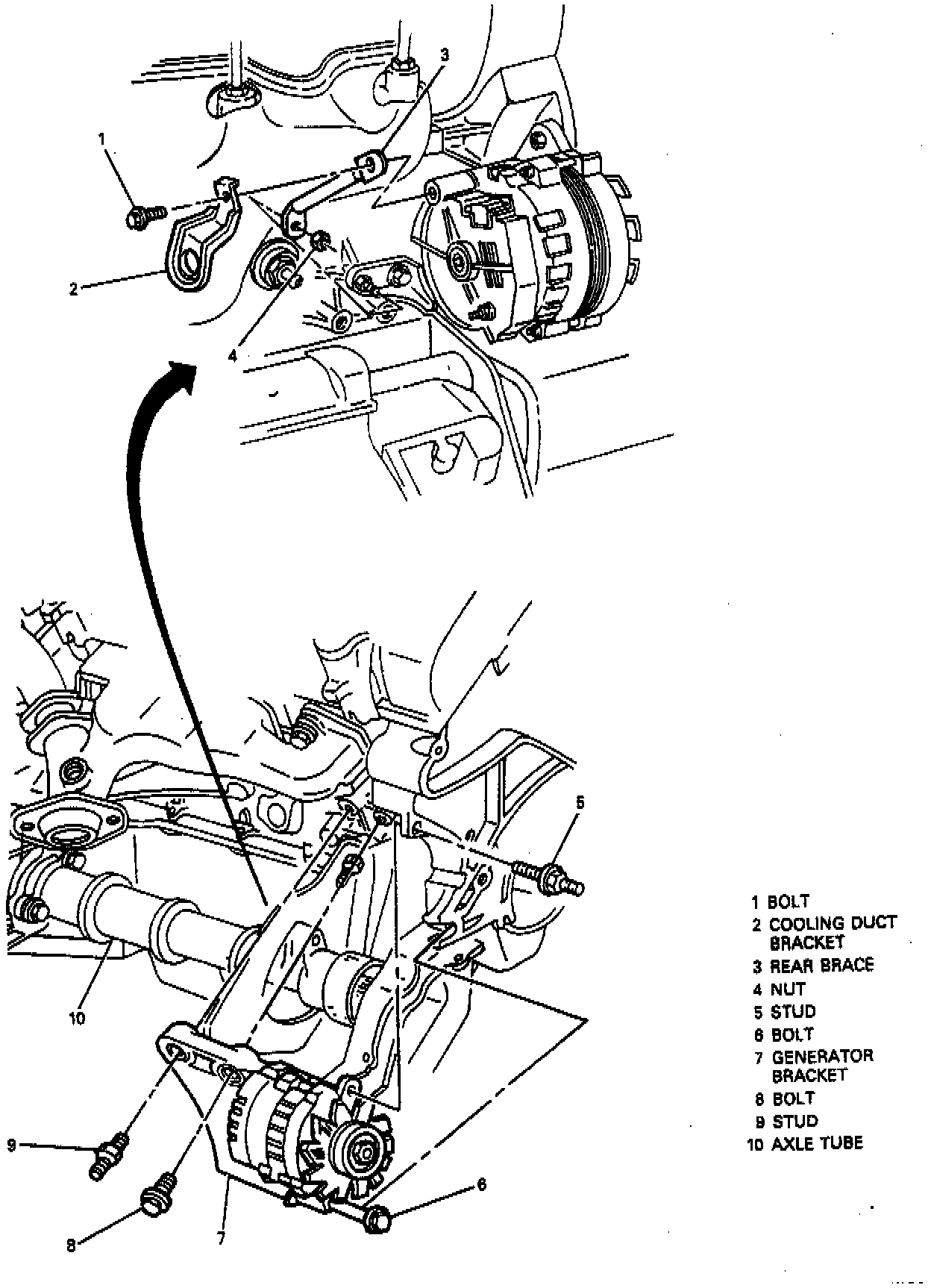 5. Generator rear brace and bolt, including cooling duct bracket.