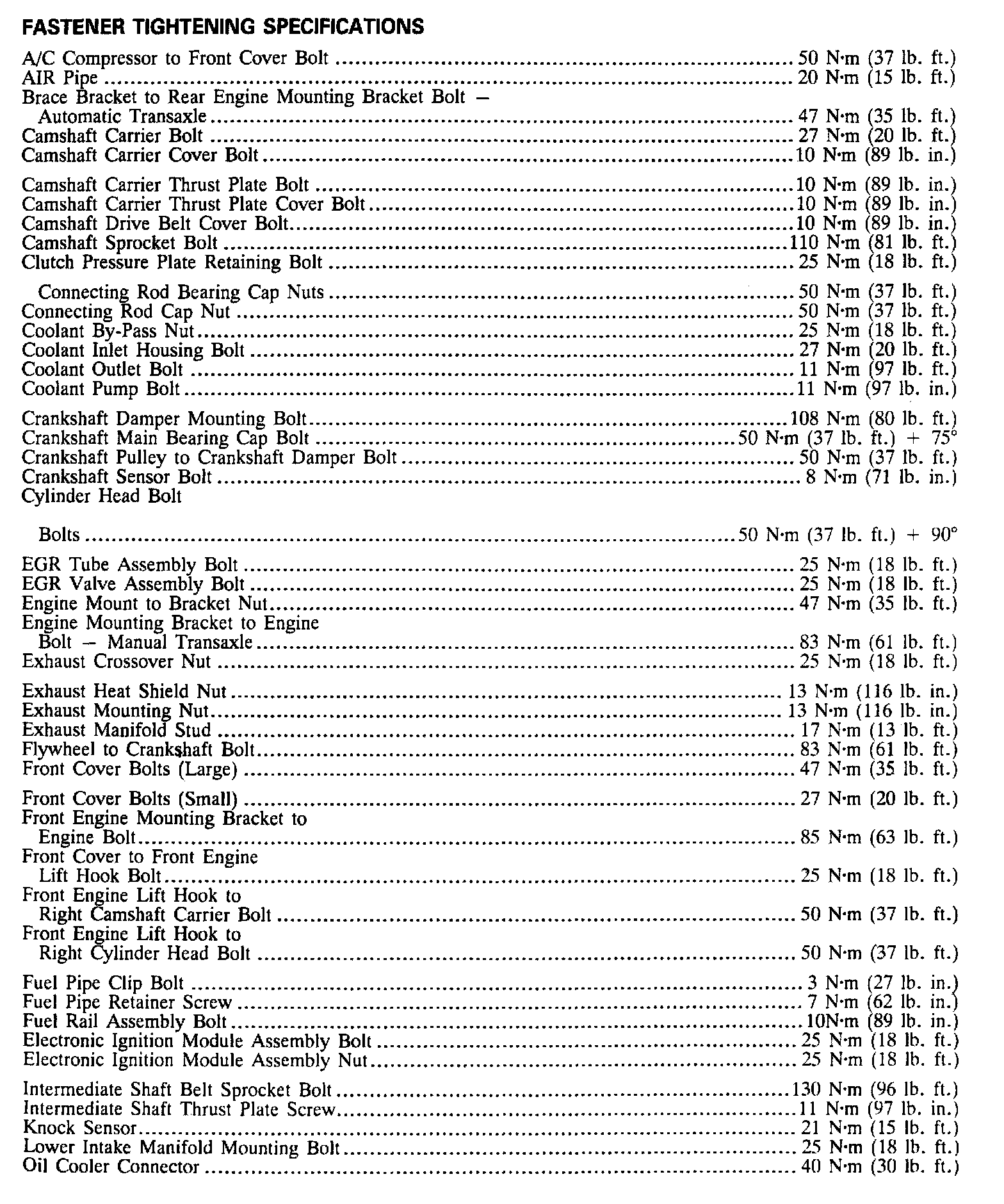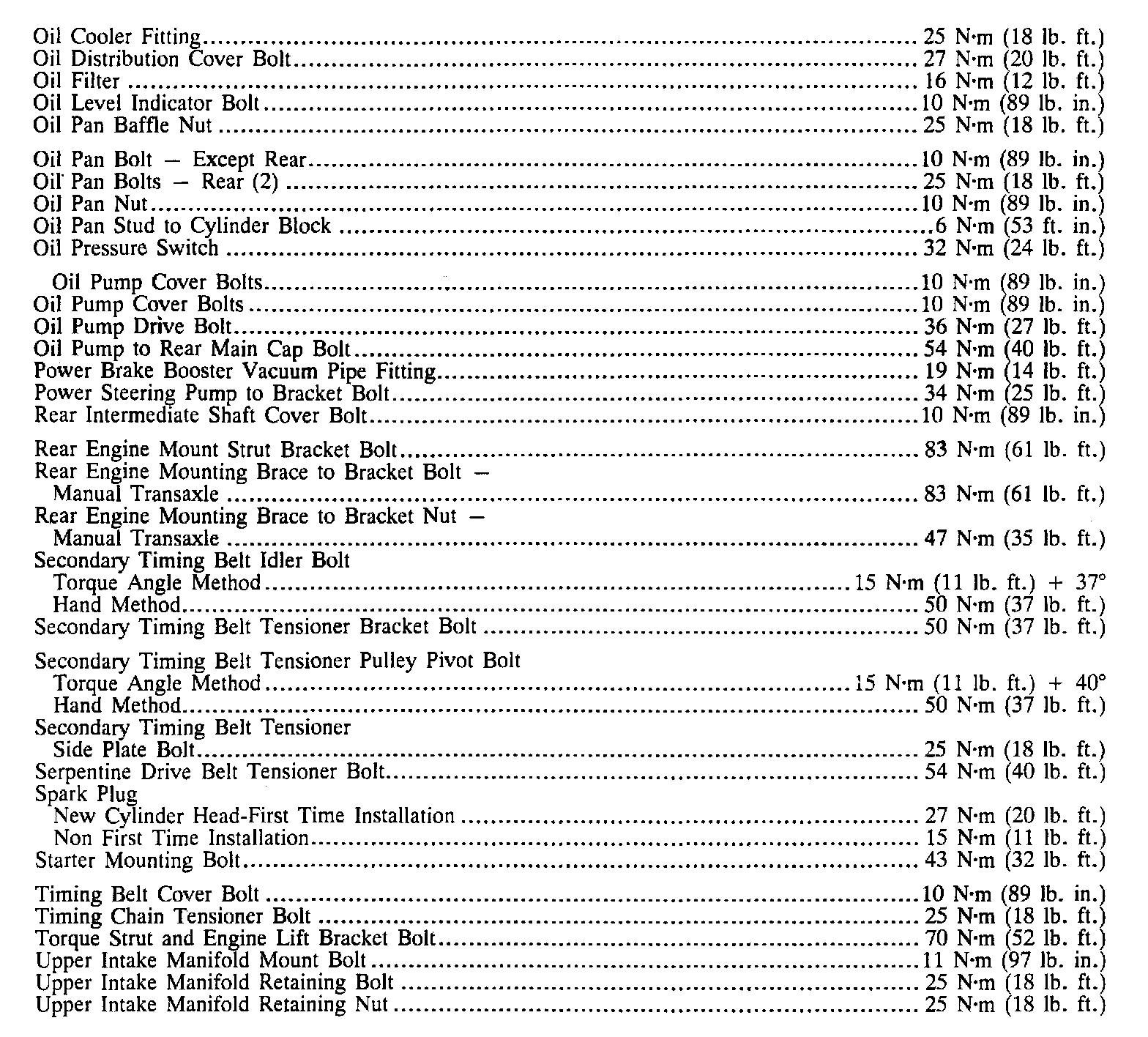 Continued Torque Specifications: