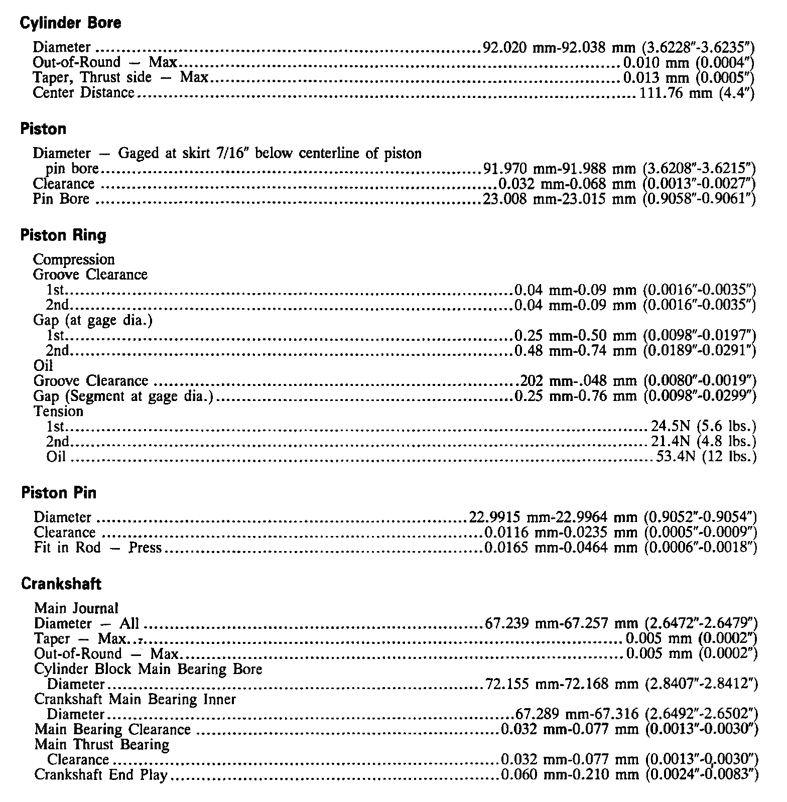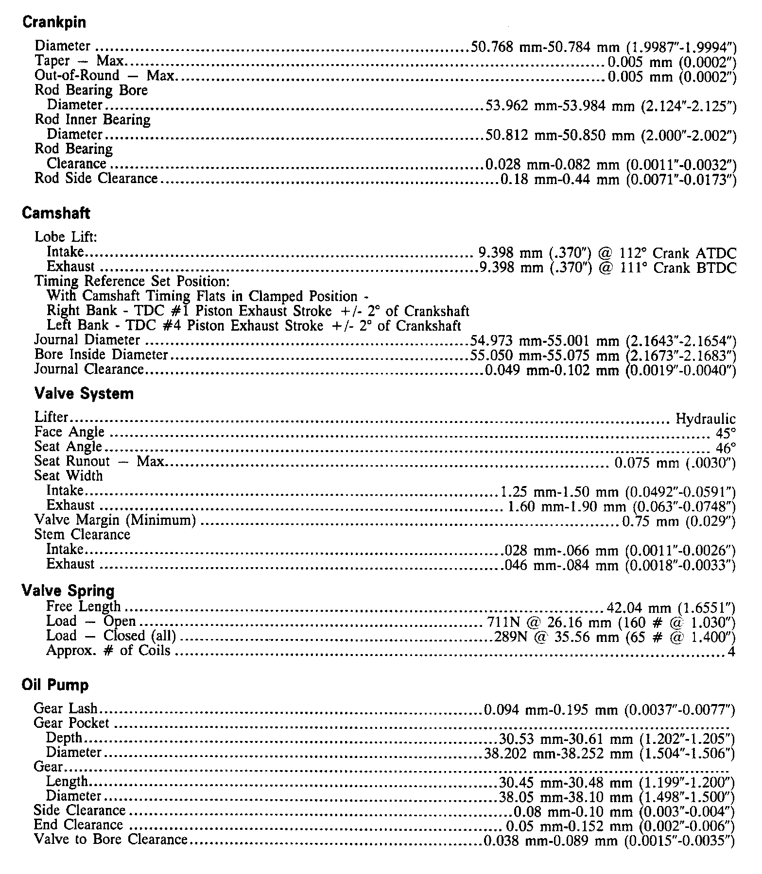 Continued Engine Specifications: