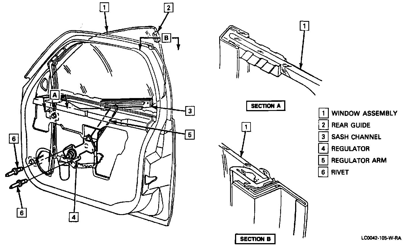 Coupe and sedan front doors use a single lift arm regulator. The following provides the procedures required for removal and replacement of both power and manual window regulators.