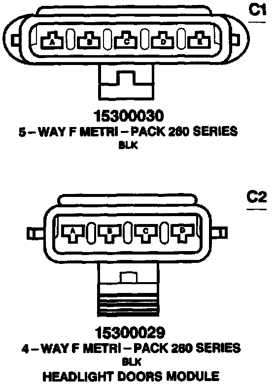 Harness Connector Faces: Headlight Doors Module (C1 & C2):