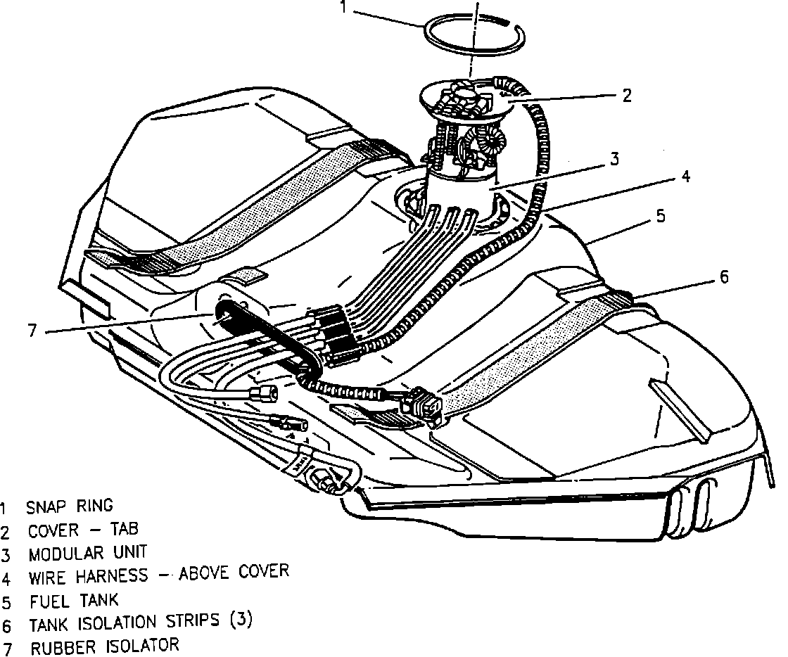 4. Fuel sender assembly. Refer to "Modular Fuel Sender Assembly" in this section.