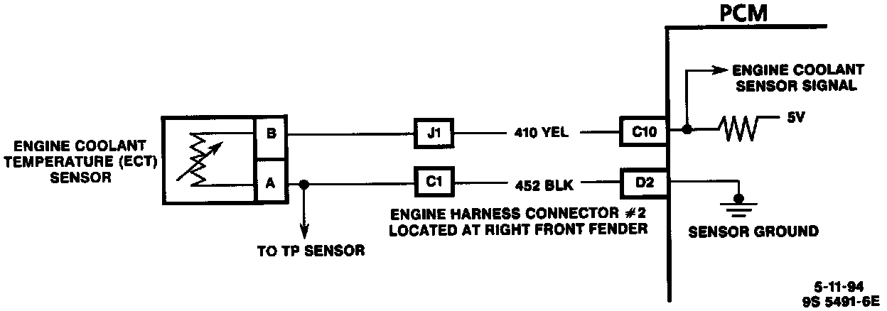 Engine Coolant Temperature (ECT) Sensor Schematic: