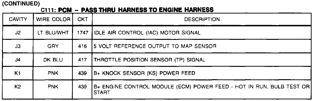 C111: PCM-Pass Thru Harness To Engine Harness (Part 2 Of 2):
