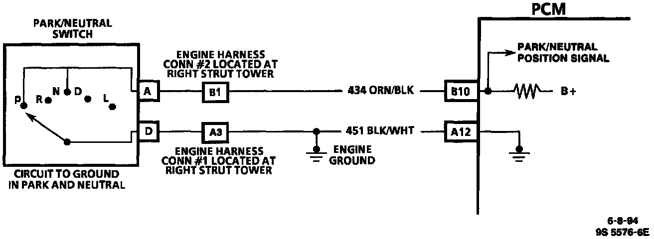 The Powertrain Control Module (PCM) supplies ignition voltage through a current limiting resistor to CKT 434 and senses a closed switch, when the voltage on CKT 434 drops to less than one volt.