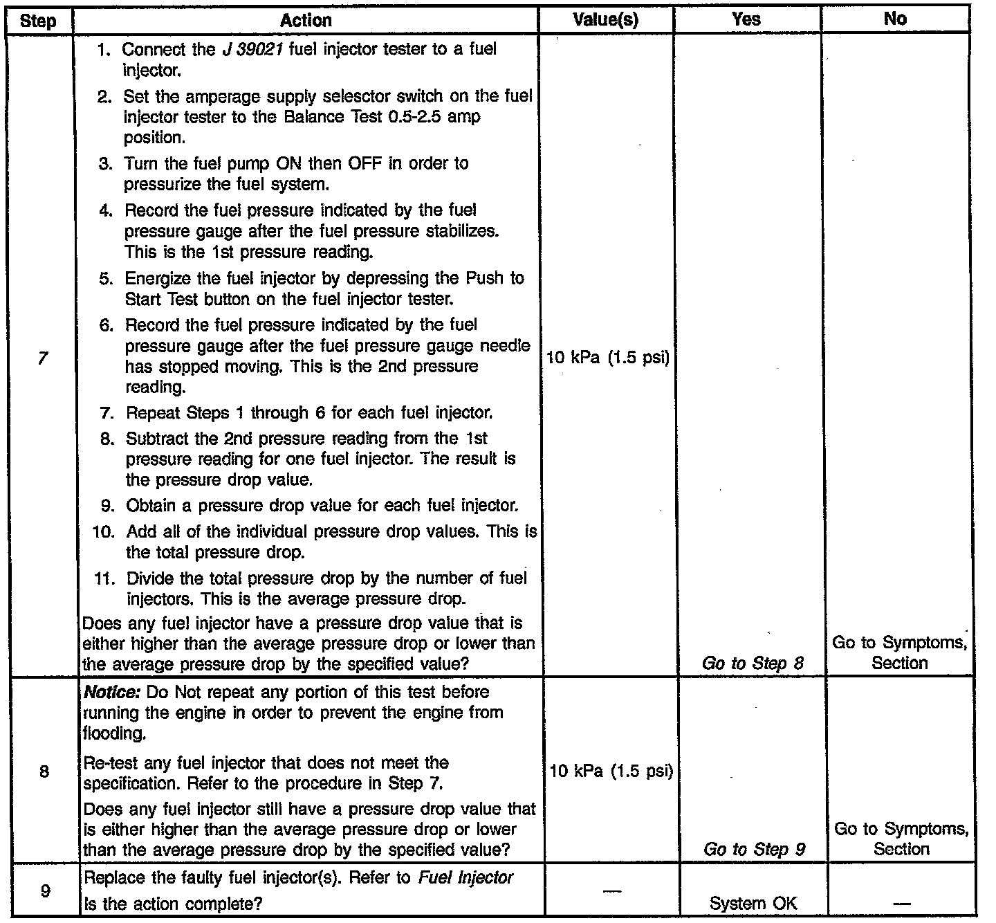 6. The fuel pressure should reach a steady value. If the fuel pressure does not reach a steady value, go to Fuel System Diagnosis.
