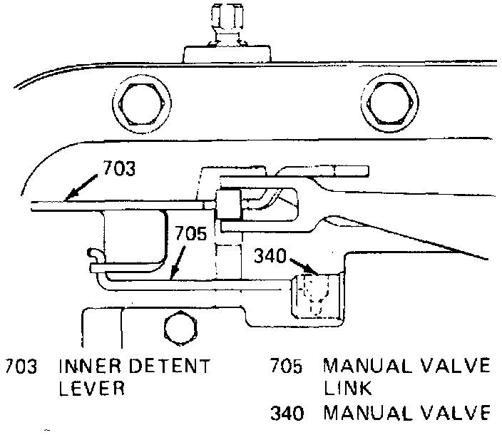 9. Install valve body assembly. Connect manual valve link to the inside detent lever.