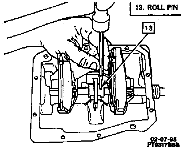 1. Selector arm roll pin using a pin punch and a hammer.