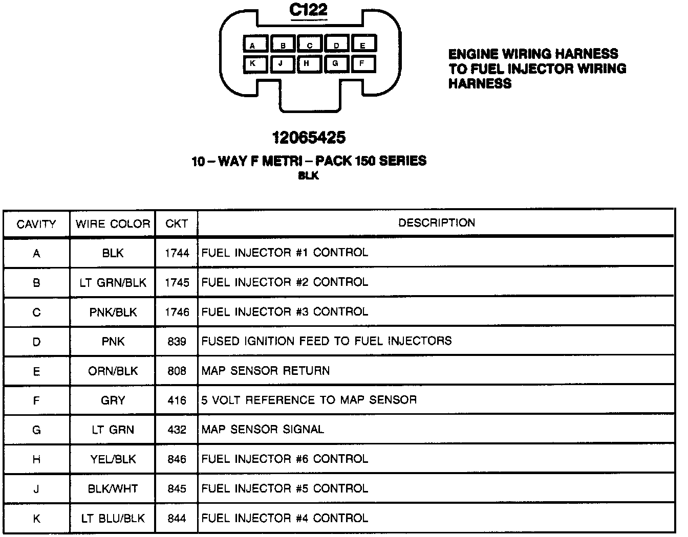 C122: Engine Wiring Harness To Fuel Injection Wiring Harness: