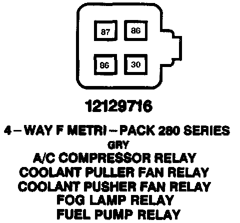 A/C Compressor, Coolant Puller Fan, Coolant Pusher Fan, Fog Lamp & Fuel Pump Relay: