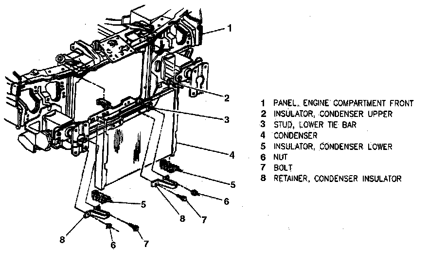 5. Condenser lower support brackets.