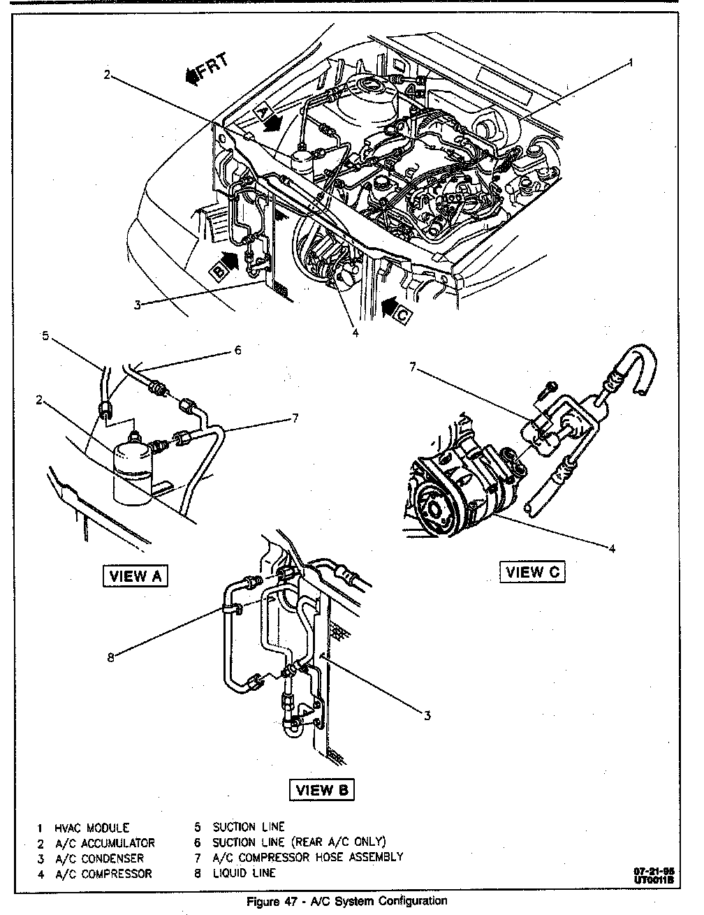 3. A/C condenser tube (condenser to evaporator) to A/C condenser.