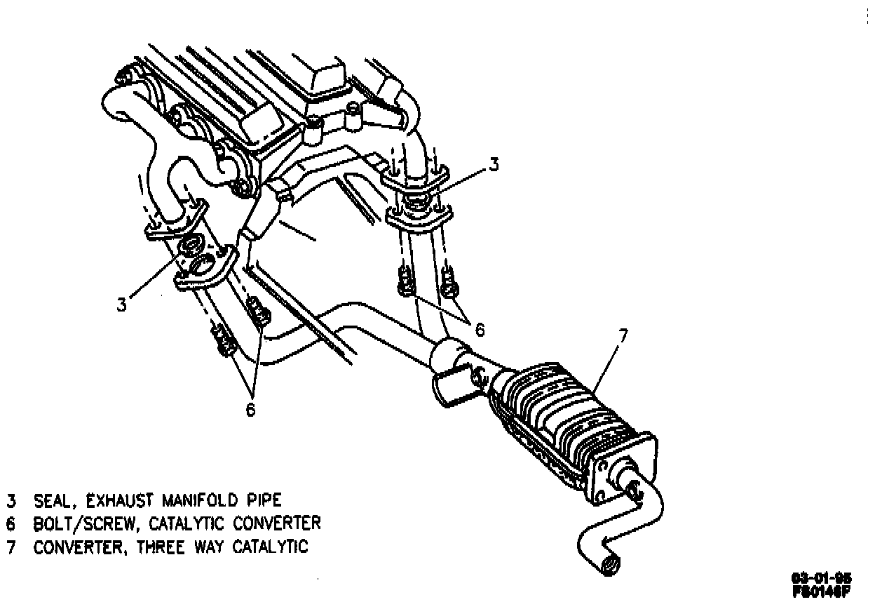 4. Catalytic converter bolts/screws (6) at exhaust manifolds.
