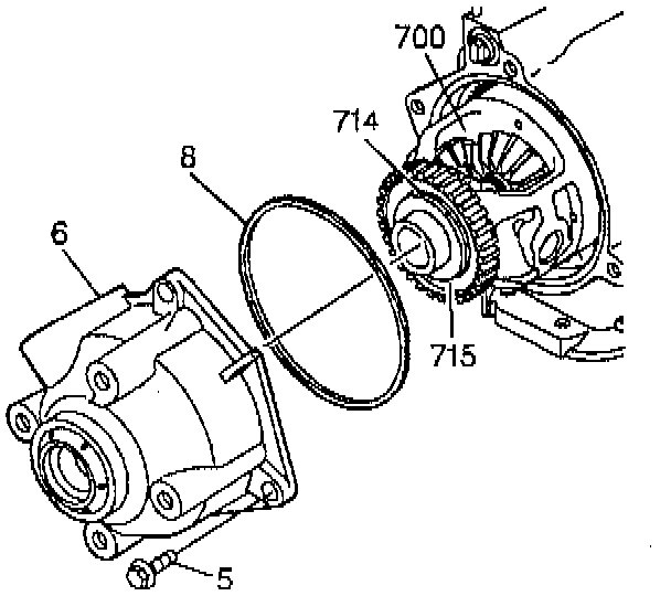 1. Make sure that the thrust washer (714) and the bearing (715) are still on the front differential carrier.