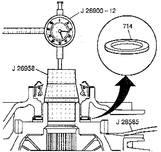9. Note the dial indicator reading before changing the carrier thrust washer (714):