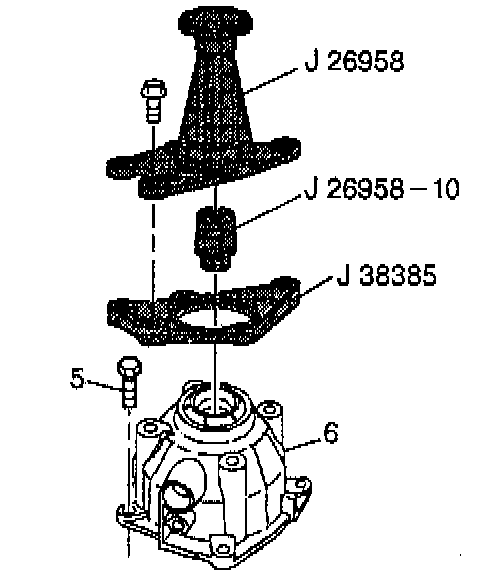 11. Install J26958, J26953-10, and J 38335 0nto the case extension (6).