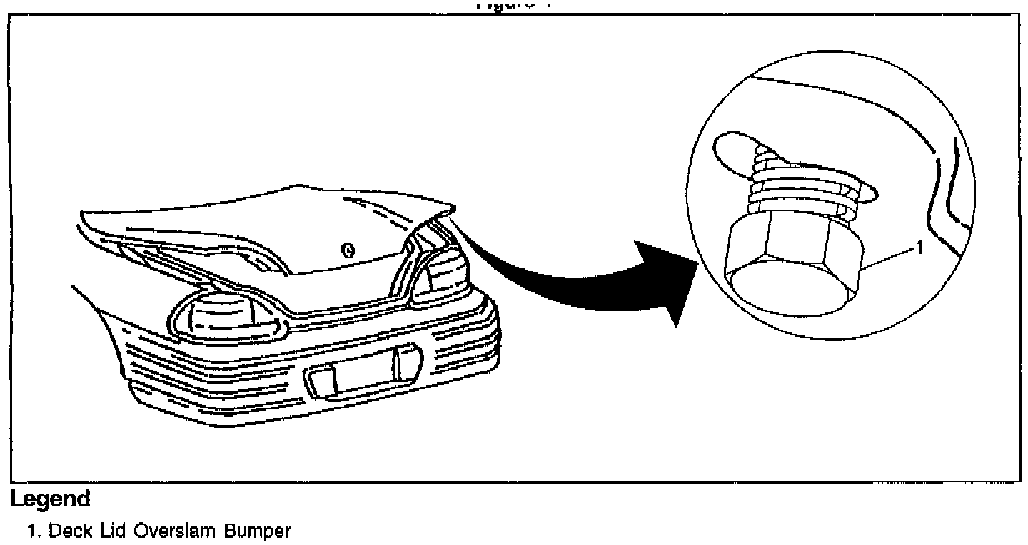 Before beginning, verify that both overslam bumpers are screwed into the deck lid completely. DO NOT use the overslam bumpers for adjustment of the deck lid height. See Figure 1. After all adjustments have been made, reposition both overslam bumpers so that they are only making light contact with the body and are not supporting the deck lid.