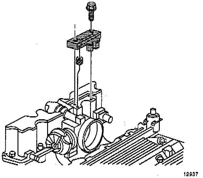 12. Install the two bolts and one nut attaching the accelerator cable bracket.