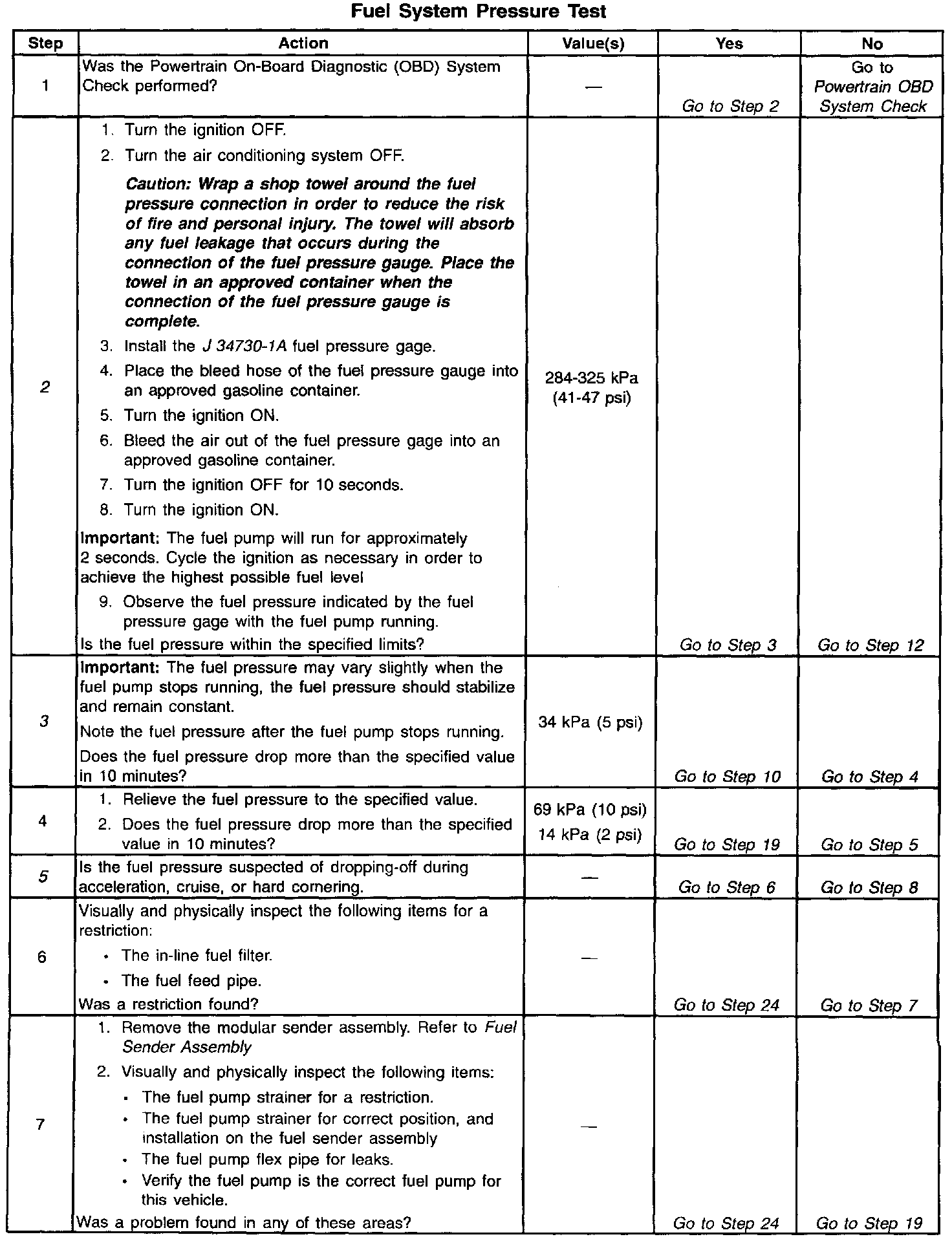 15. A lean condition may result from the fuel pressure being below 284 kPa (41 psi). A lean condition may cause a DTC P0131 or a DTC P0171 to set. Driveability conditions associated with lean conditions can include hard starting (when the engine is cold), hesitation, poor driveability, lack of power, surging, and misfiring.