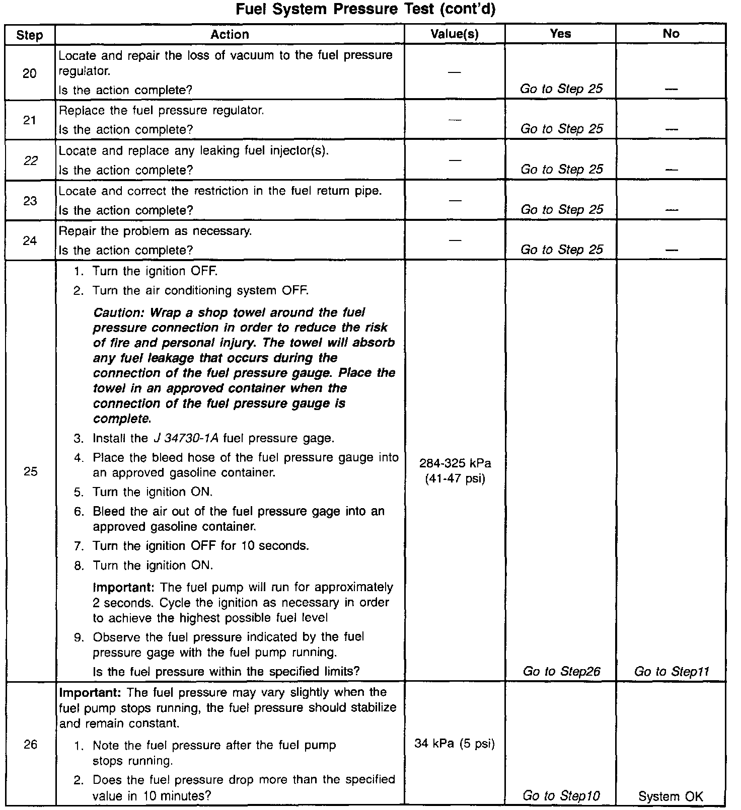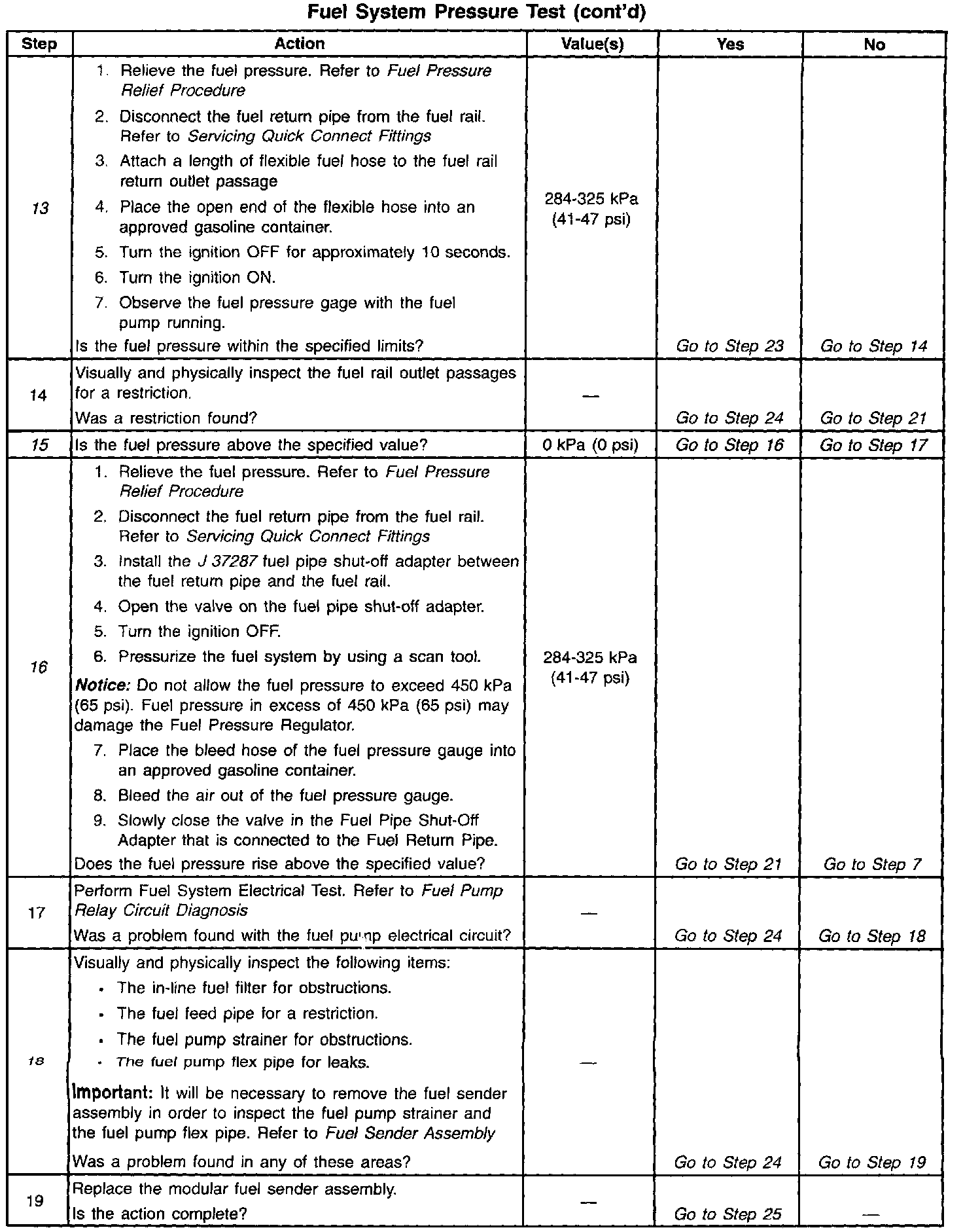 13. This test determines if the high fuel pressure is due to a restricted fuel return pipe or if the high fuel pressure is due to a faulty fuel pressure regulator.