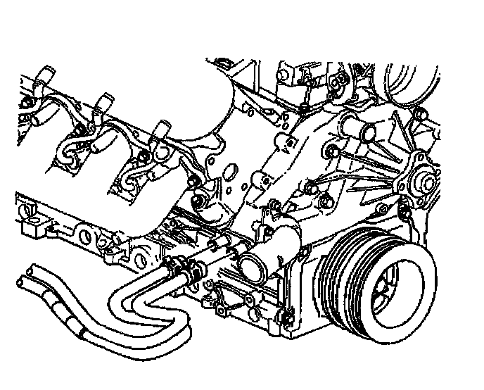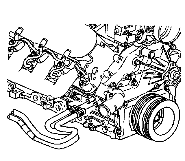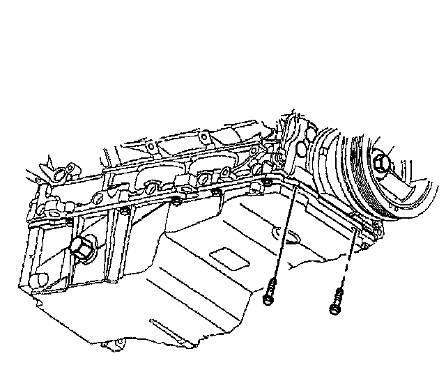 1. Apply a 5 mm (0.20 inch) bead of sealant GM P/N 12378190 or equivalent 20 mm (0.80 inch) long to the oil pan to engine block junction.