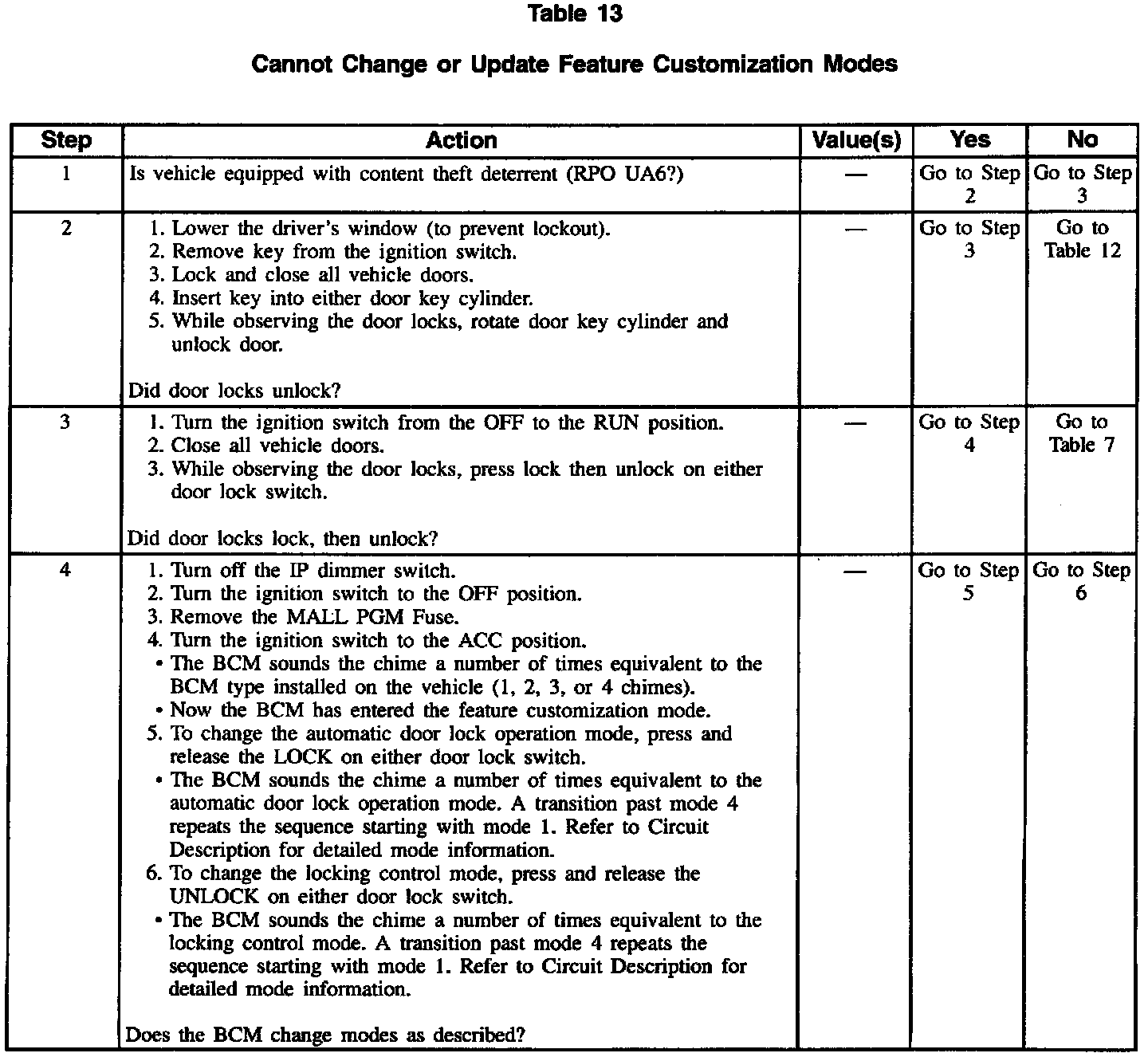 Table 13 Cannot Change/Update Feature Customization Modes (Part 1 Of 2):