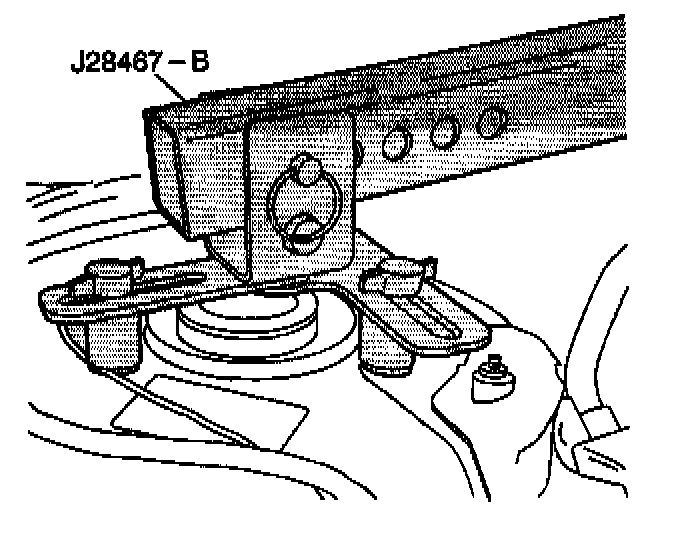 6. Install the cross bracket assembly (J 28467-1A) over the strut tower tube (J 28467-3).