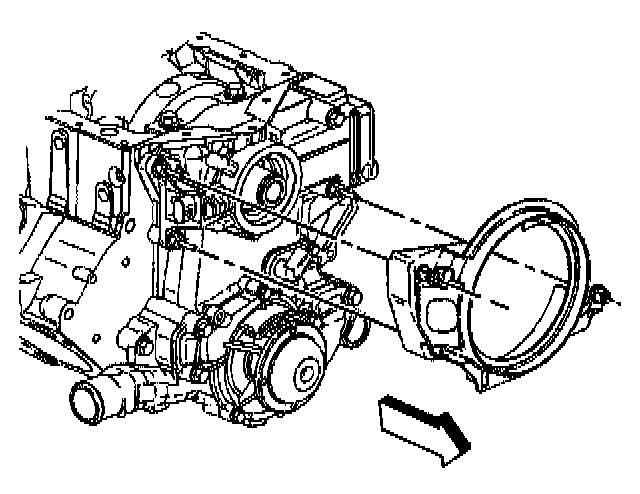 2. Install the engine front cover. Align the cogs on the crankshaft sprocket with the cogs on the oil pump in the engine front cover.