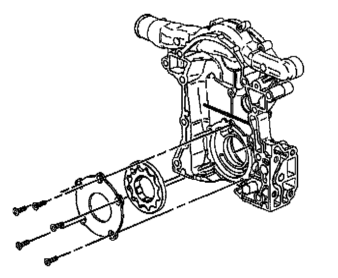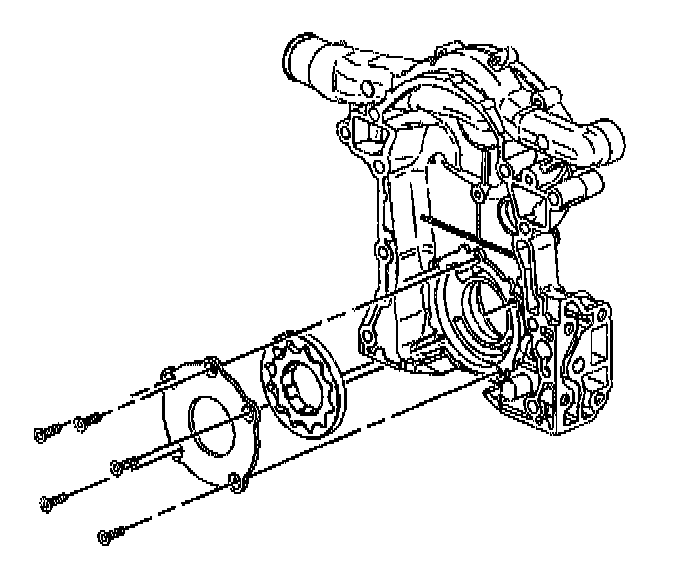 19. If replacing the engine front cover, remove the oil pump cover and gear set from the engine front cover. Refer to Oil Pump Cover and Gear Set Replacement.