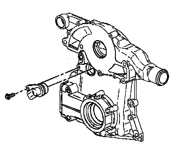 3. If replacing the engine front cover, install the oil filter adapter and pressure relief valve to the engine front cover. Refer to Oil Filter Adapter and Valve Assembly Replacement.