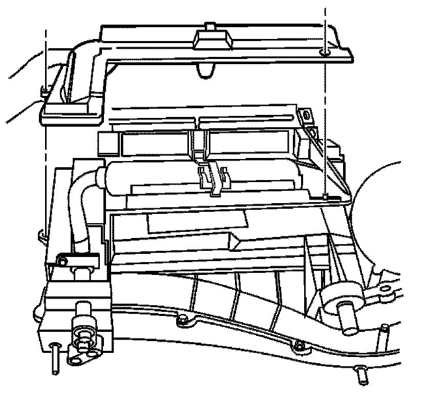 1. Install the heater core side seals (1) from the HVAC lower case.