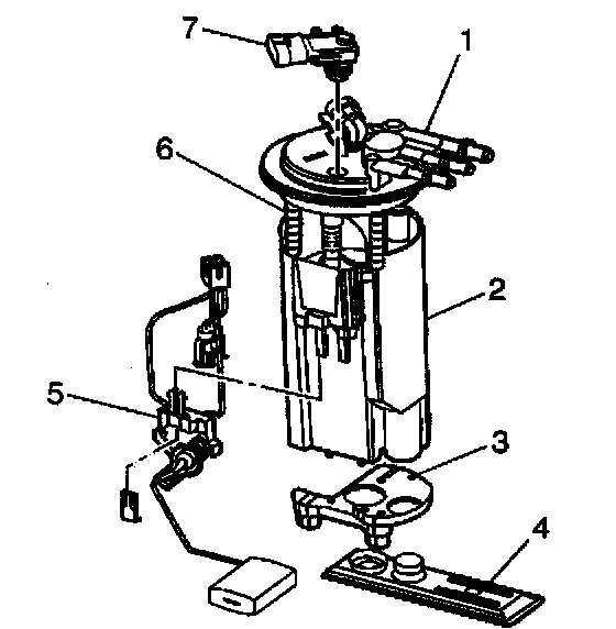3. Remove the fuel level sensor (5) from the modular fuel sender.