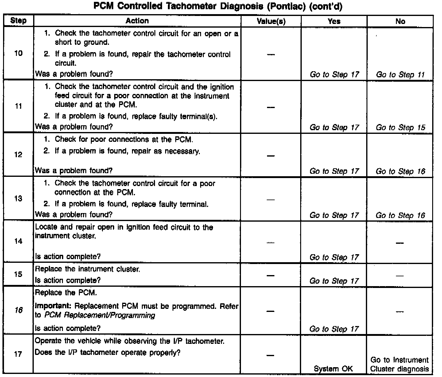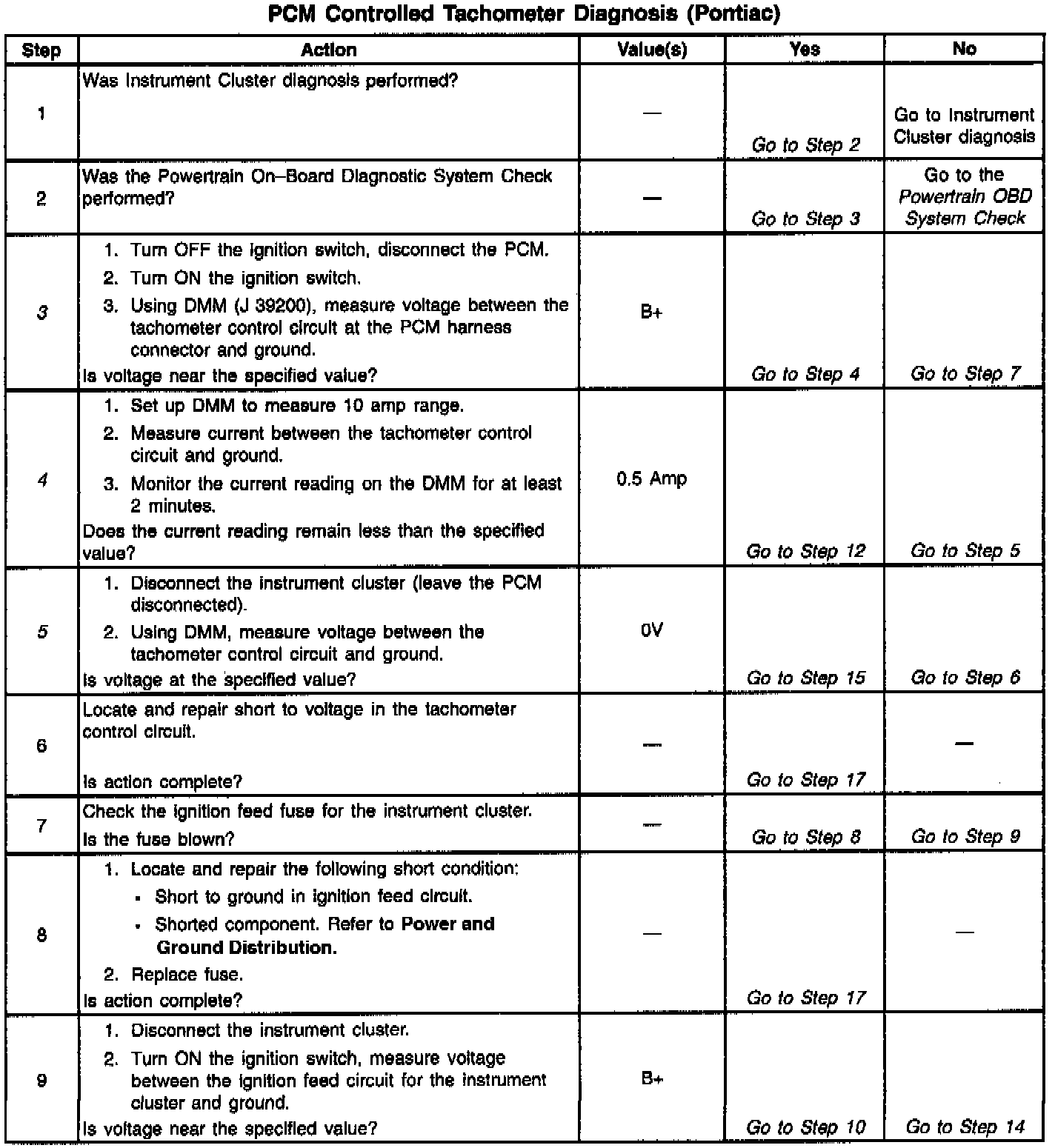 PCM Controlled Tachometer Diagnosis