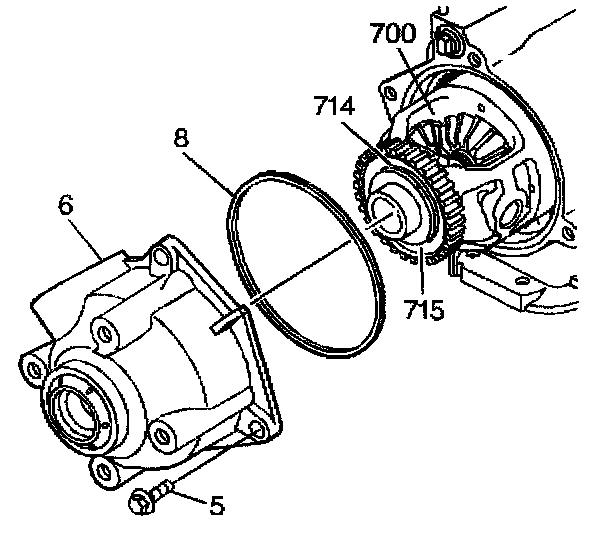 2. Rotate the differential carrier until the end of the output shaft can be seen and the differential pinion shaft (701) is in a horizontal position.