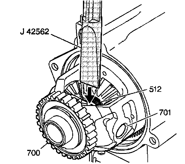 3. Place the J 42562 between the end of the output shaft and the differential pinion shaft.