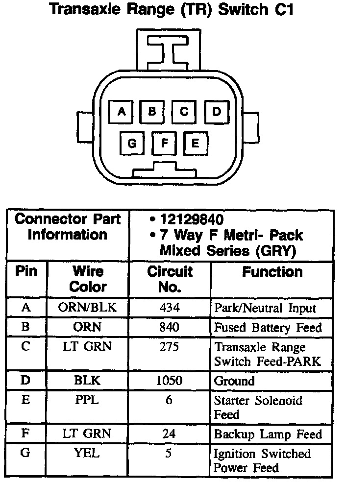 Transaxle Range (TR) Switch: C1: