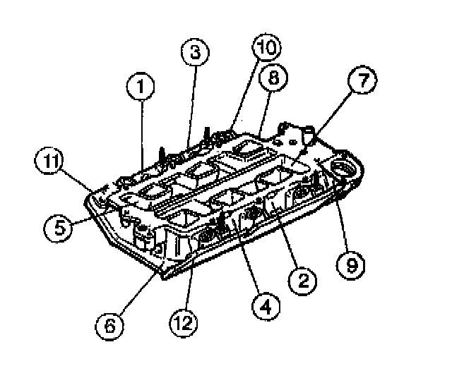 Install the lower intake manifold bolts (1 - 12). Apply threadlock compound GM P/N 12345382 or equivalent to the two hidden bolts and ensure they are installed. Tighten the lower intake manifold bolts in sequence to 15 Nm (11 ft. lbs.).